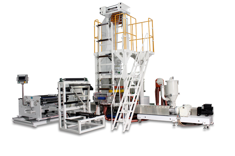 五层多层共挤吹膜实验线可用于测试和加工多种材料,并自动精确地完成挤出过程中的熔体压力、温度等重要信号的测量。