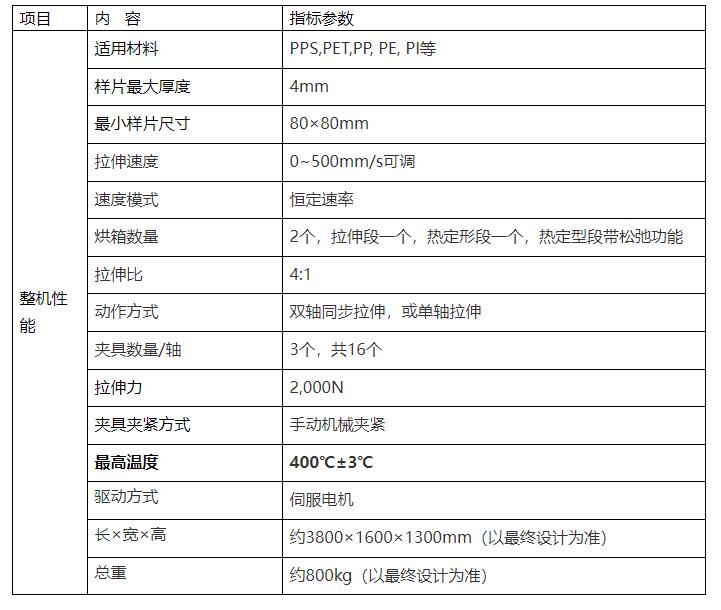 高温型薄膜双向拉伸试验仪的性能及技术指标: