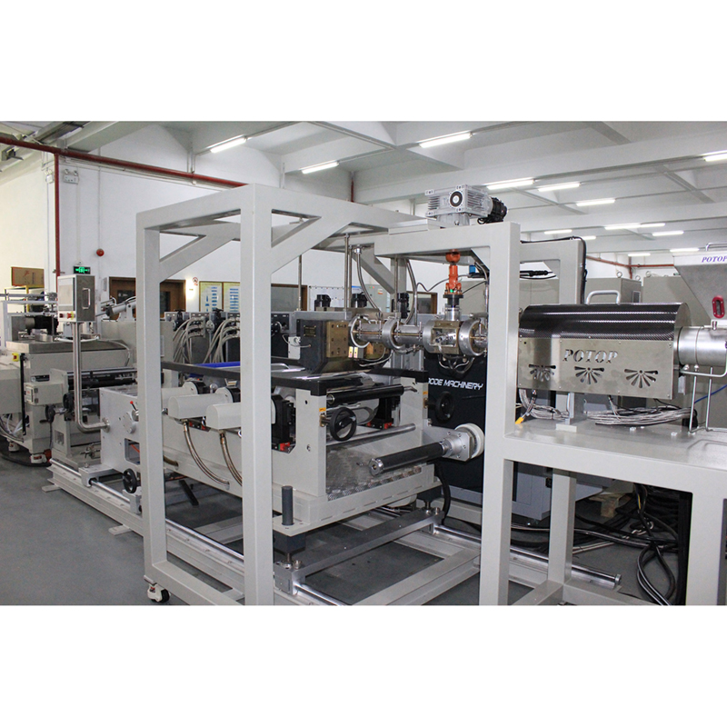 高温熔体流延拉伸实验线是一种结合精密挤出流延成型技术和精密纵向拉伸技术的试验设备,是高精度、高性能薄膜成型的理想实验设备。纵向拉伸单元采用卧式结构,预热辊组、拉伸辊组、退火辊组和冷却辊组,可对塑料薄膜实现连续的加热、纵向拉伸、退火定型、冷却,从而获得高性能纵向拉伸薄膜制品。