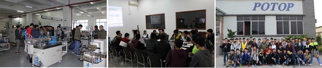 广东轻工职业技术学院塑机141和塑机142班共84名学生与2015年12月15日,在何亮、谭寿再、陈金伟和庄文柳等老师的带领下来我公司进行参观实习,期间,我司工程师详细讲解了我司设备机械原理及功能,也解决了学生们提出的问题,积极配合其教学资料库课程素材收集工作!