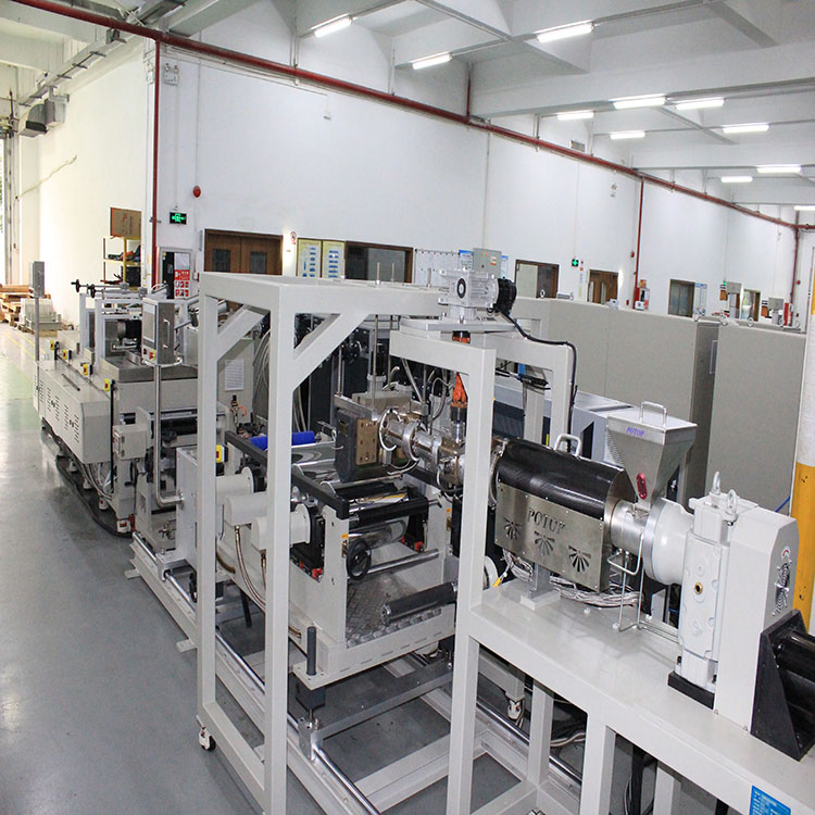 广州普同为吉林大学定制一台聚酮PEEK高温挤出流延拉伸实验线。其最大的优点是可在接近于实际加工的条件下进行测试。在测试过程中的频率电压、电流等参数将会以数字的形式实时显示,以供用户参考。