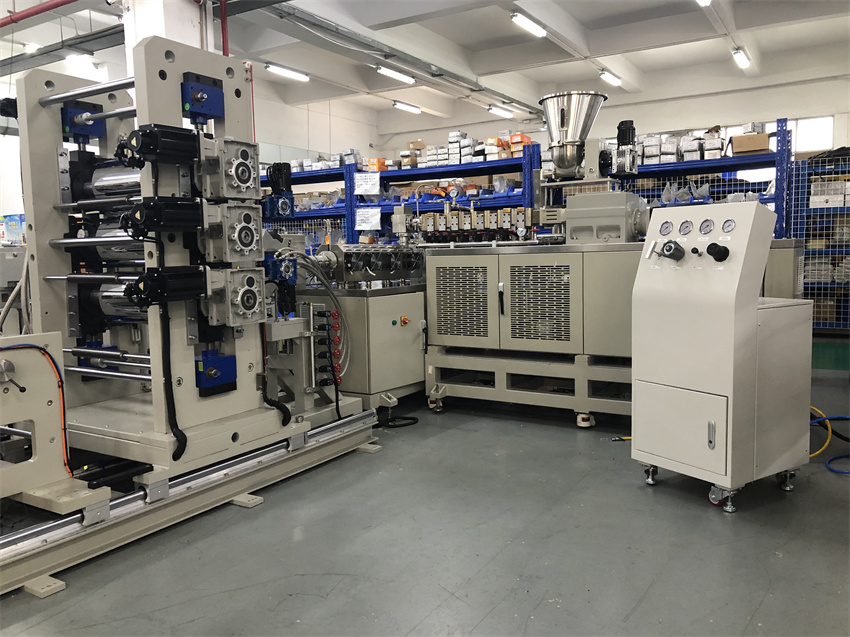 塑料发泡实验设备 PET超临界发泡 双阶挤出机三辊压延片材机