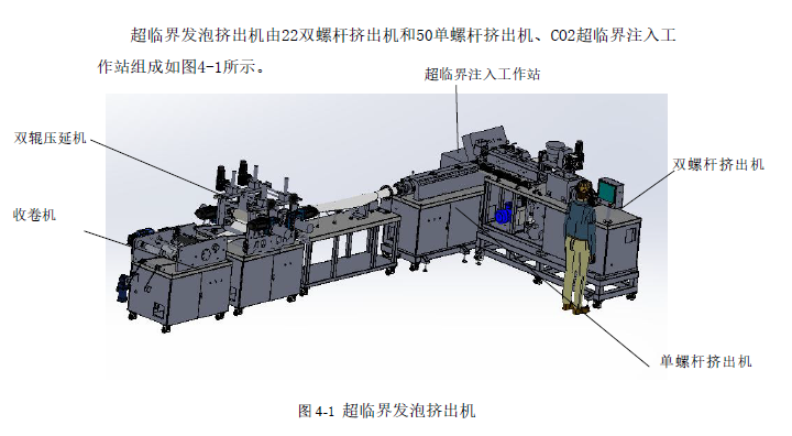 PP/PE/PET 材料实验室超临界微孔发泡挤出成型设备 主要由双螺杆挤出机,一台单螺杆挤出机,一套超临界注入工作站,主要用于聚合物超界气体发泡、改性、合、挤出成型的研究和实验。