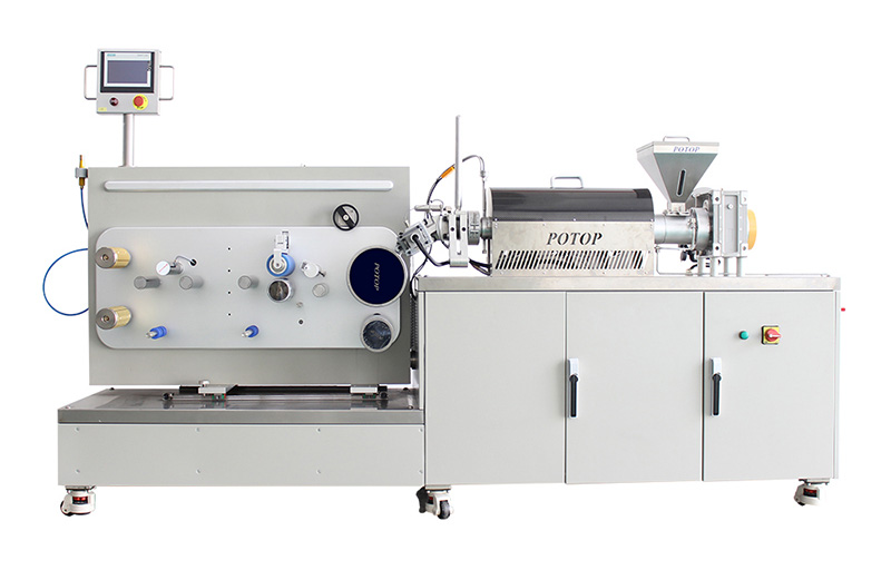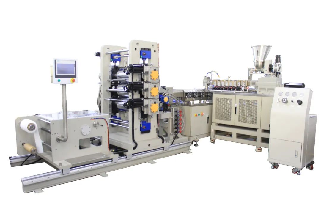 2023.09高温熔体流延拉伸实验线普同为客户高温材料(PEEK,PI)定制的功能薄膜成型设备,集高温精密挤出,流延,拉伸,牵引与收卷功能于一体。