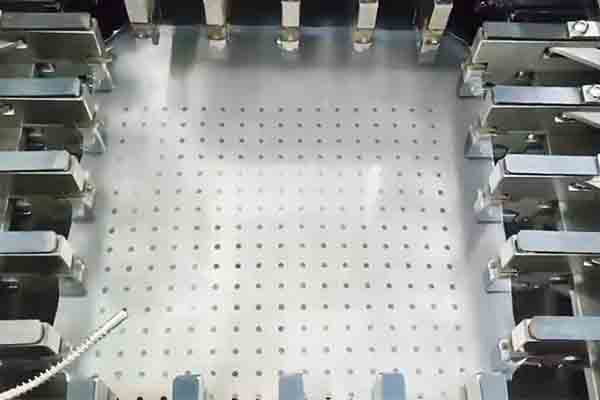 薄膜原点双轴双向拉伸仪由装夹组件、拉伸组件、拉伸机构移动组件、热烘箱组件、气动风帘组件及电气控制系统等组成,能将一定尺寸的膜样片按所需拉伸比,在适合温度及时间内进行拉伸试验。